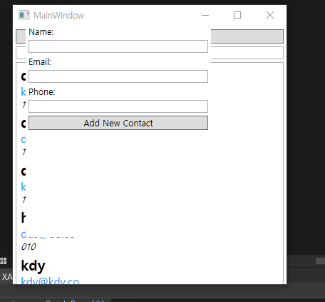 // AddNewContactWindow 윈도우의 입력 TextBox 컨트롤에서 값을 가져와
